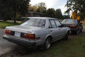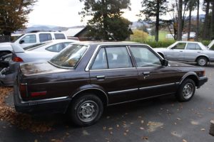 The brown (1983) sedan was originally sold in Quebec but was not winter-driven. It has the 1600 cc EL1 engine and five-speed manual, and recently had a new clutch installed. It runs and drives okay, but the carburetor struggles a bit in the wet or cold. As would be expected for its age, some of the clear coat has peeled and there is some minor, surface rust damage, but the underside is clean and the undercoating is intact. It has 240,000 km.